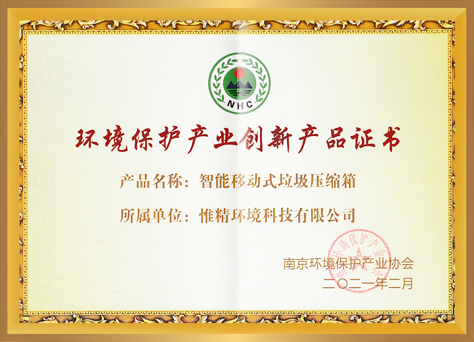 環境保護產業創新產品證書(智能移動式垃圾壓縮箱)2021年2月