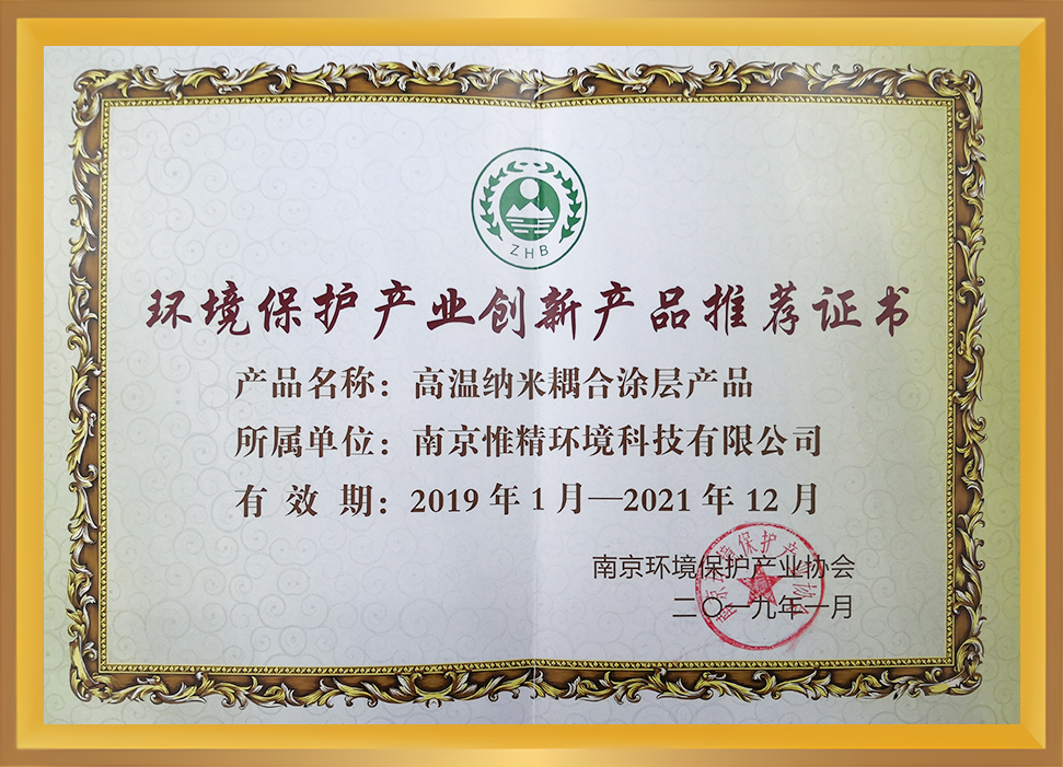 環境保護產業創新產品推薦證書(涂層)