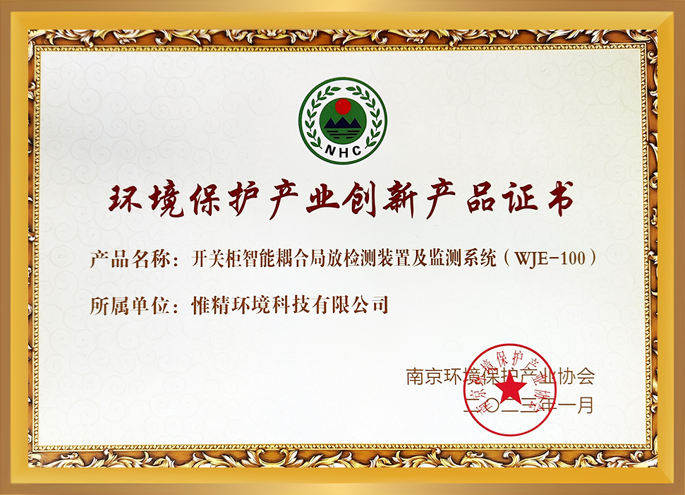 環境保護產業創新產品證書(開關柜局部放電監測裝置)