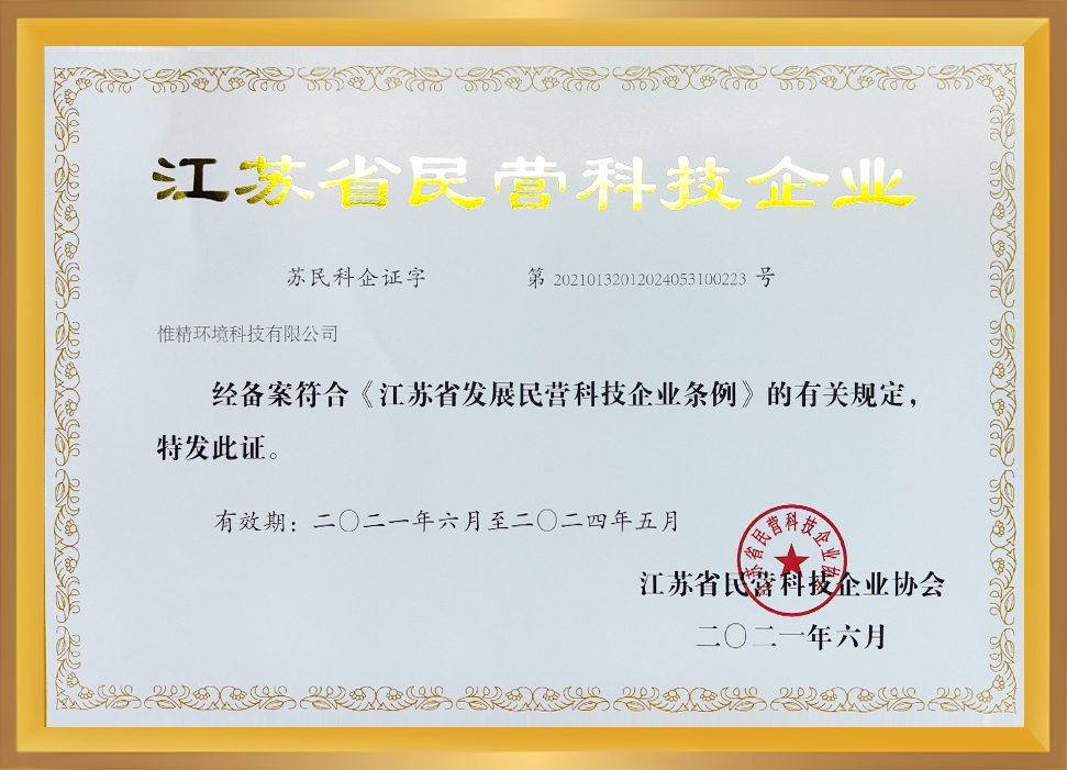 江蘇省民營科技企業證書